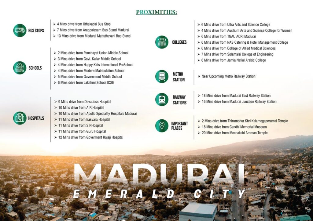 Welcome to a Truly Enriching life at the most elegant and enchanting address Near Othakadai, Madurai, It's not everyday you come across a great luxury villa plot in an amazing location. That too at an incredible price and when you find one, you just have to go for it. Tucked away from the bustle of the city, EMERALD CITY will introduce a whole New Standard of Living Near Othakadai, Madurai.