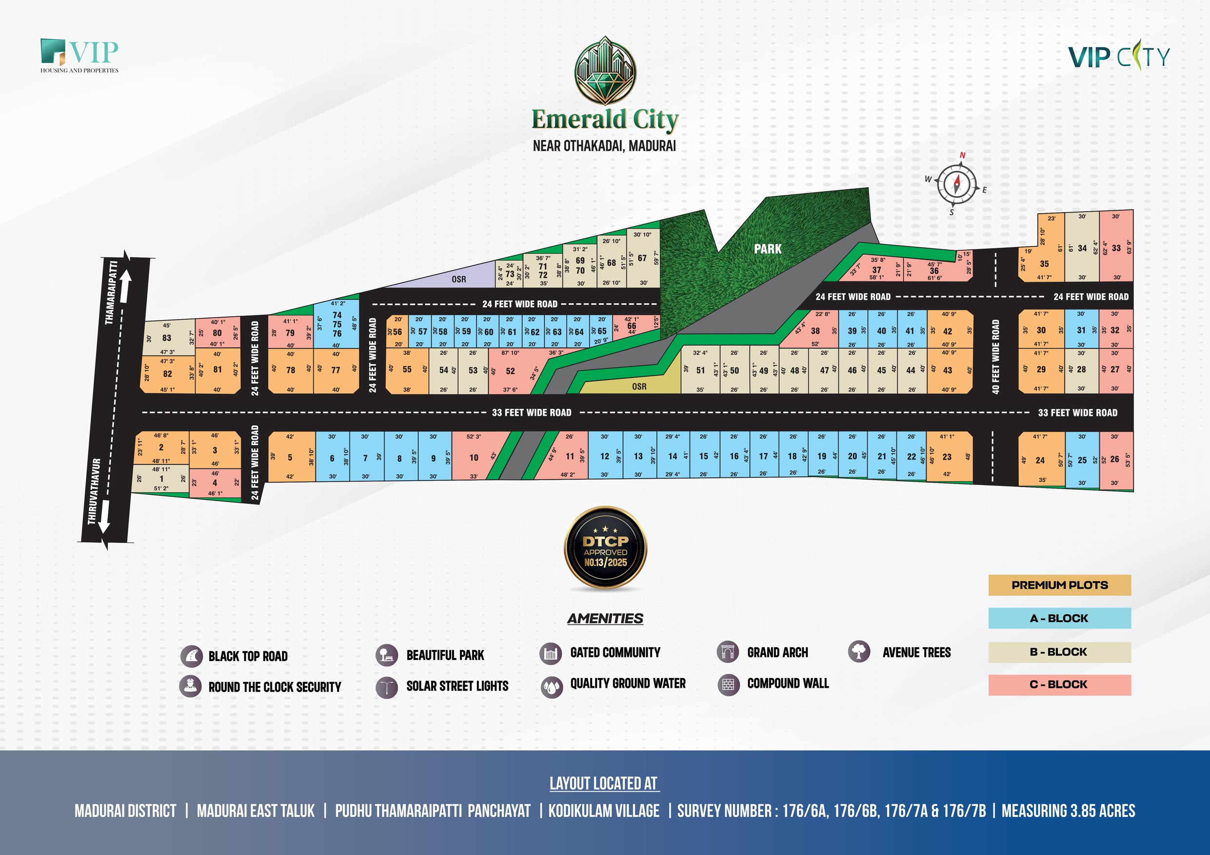 The Luxury gated community, DTCP Approved Layout spread across 3.85 acres of greenery, consists of 83 premium plots ranging from 385 sqft to 2698 sqft.